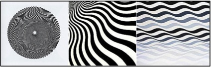 A finales de esta década y principios de los setenta, Bridget Riley introdujo mucho más el color en sus obras, bajo la premisa de que la percepción de éste es relativa, estando determinada por el efecto óptico producido por su posición, generando así una determinada sensación de movimiento.