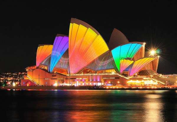 Si Jorg Utzon pudiera contemplar los espectaculares y brillantes estampados nocturnos que el Festival de Luz de Sidney diseña anualmente para su icónico edificio de la ópera seguro que se emocionaba.