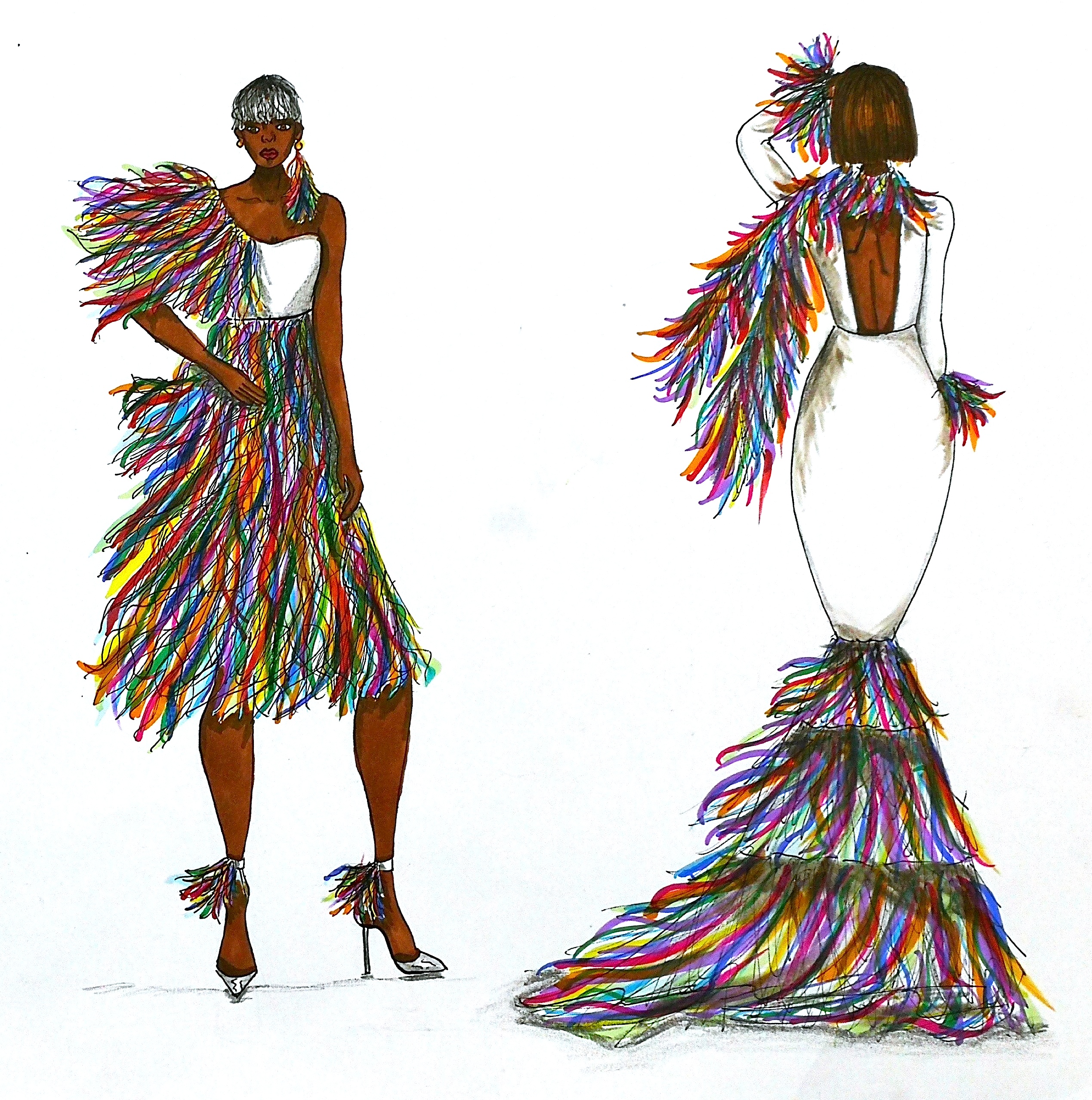 – Practica las interpretaciones creativas aplicadas a proyectos de moda inspiradas en objetos industriales o naturales. A continuación tienes un ejemplo de un proyecto de moda de una de nuestras alumnas basado en las plumas que aparecen en la siguiente fotografía: