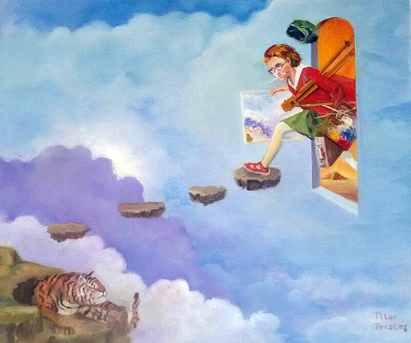 Pilar ha realizado varias exposiciones y su obra ha atravesado diferentes etapas. En esta última se inspira en el surrealismo y sus oníricos cuadros de formato medio, están protagonizados por mujeres que muestran diferentes estados de ánimo ubicadas en entornos en los que la naturaleza cobra gran relevancia. La técnica que utiliza es acrílico, prácticamente desde que empezó a pintar hace más de quince años, y emplea el color de forma realista, limpia y segura reforzando la temática de sus obras.