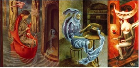 Y entre tanto la sombra y la luz, la sorpresa, las obras pictóricas que más parecen cuentos que pinturas, una narrativa sin letras, arquetípica, simbólica… Remedios puso color a las ideas pintando historias con un final abierto, con tantas puertas como ocurrencias de la mente, donde lo onírico y lo real no pueden separarse… La vida es sueño…
